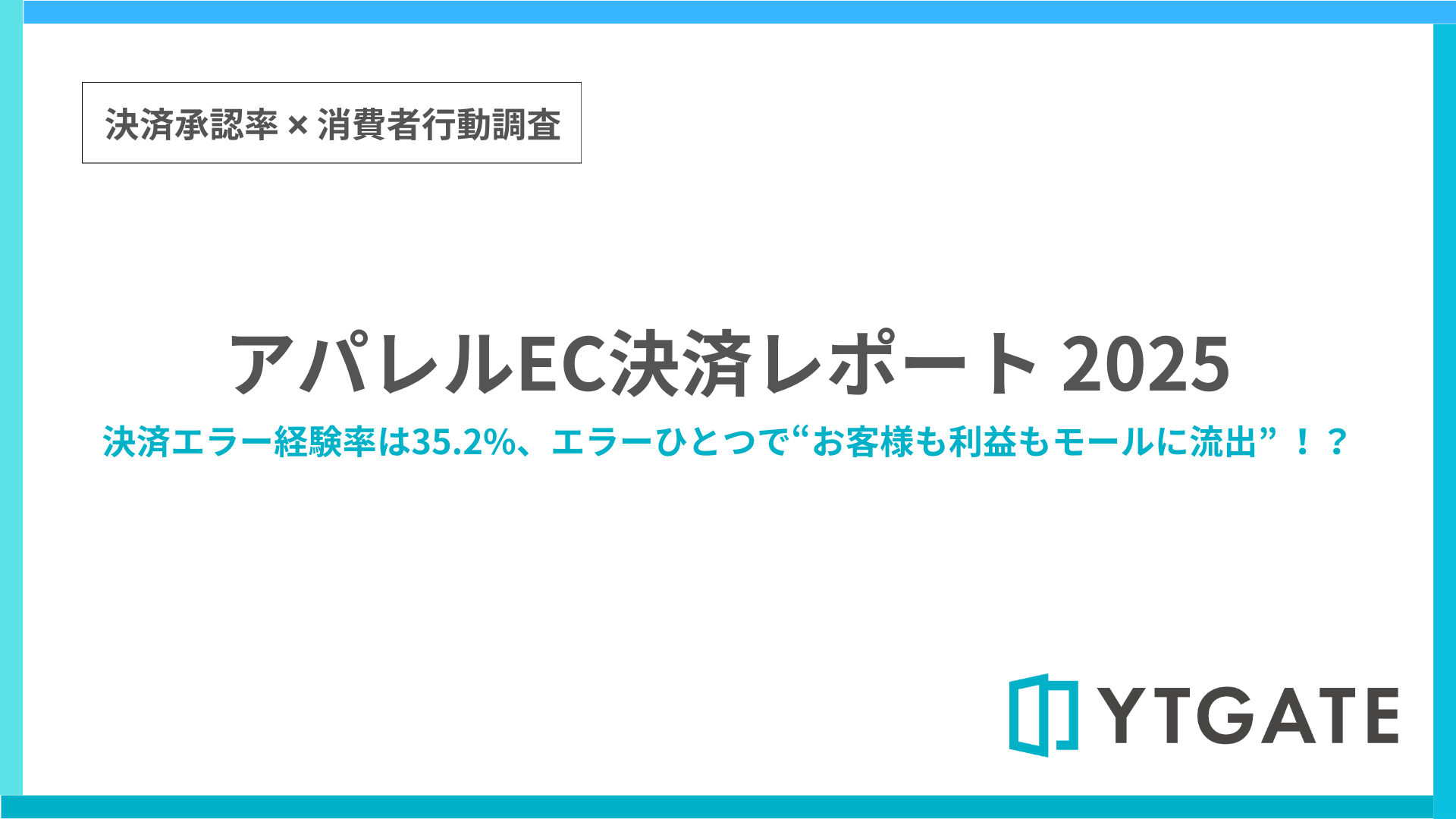 株式会社YTGATEは、EC事業者を対象とした「決済承認率の可視化診断」の結果に基づき、消費者調査を組み合わせた決済承認率レポート「アパレルEC決済レポート 2025」を公開しました。本資料は、先日発表した100社の診断サマリに続く業種別レポートであり、今回はアパレル業界に焦点を当てています。