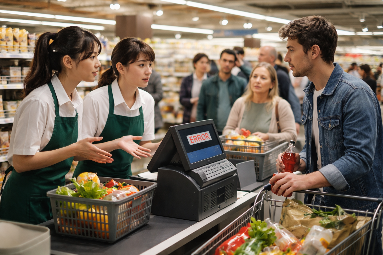 商品を手に取り、買い物かごに入れ、レジに並び、いよいよ会計の順番が来た瞬間、店員から「申し訳ありません。レジが故障しているため、お会計ができません」と告げられる。思わず「では、どうすればいいですか?」と聞き返すと、「レジの不具合なので、私たちではどうすることもできないんです」と返ってくる。この状況に、多くの人は戸惑いや不満を感じるでしょうし、「もういいや」と商品を棚に戻して店を出てしまう人もいるはずです。